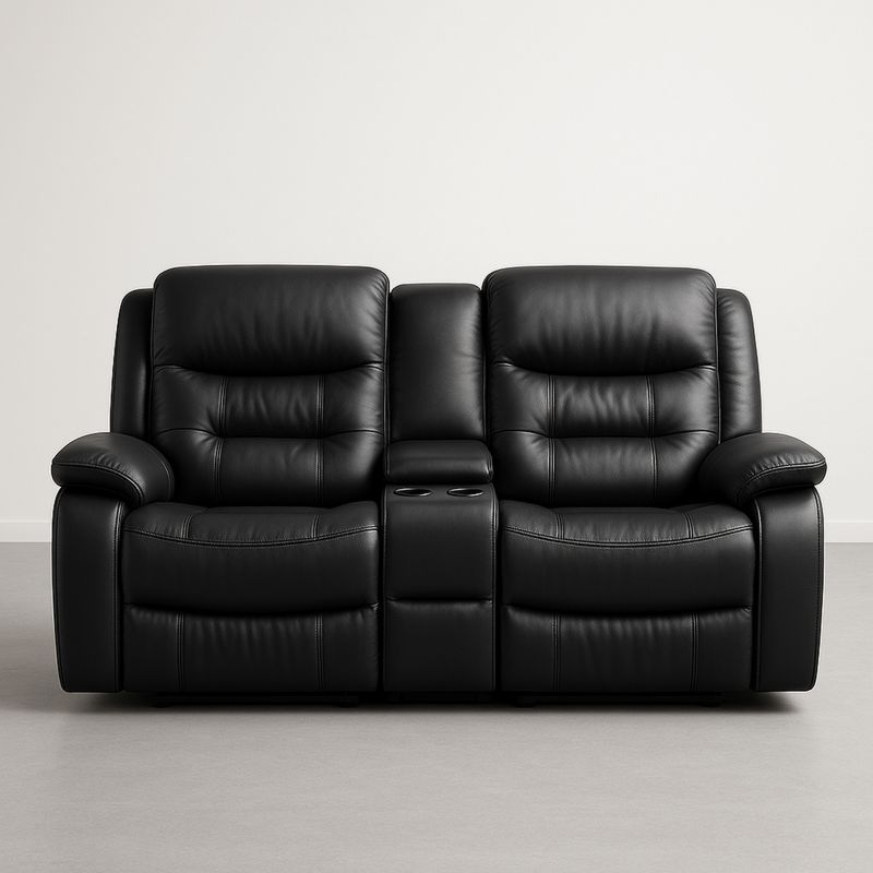 2-osobowa sofa z funkcją relaksu ze skóry ekologicznej Czarny